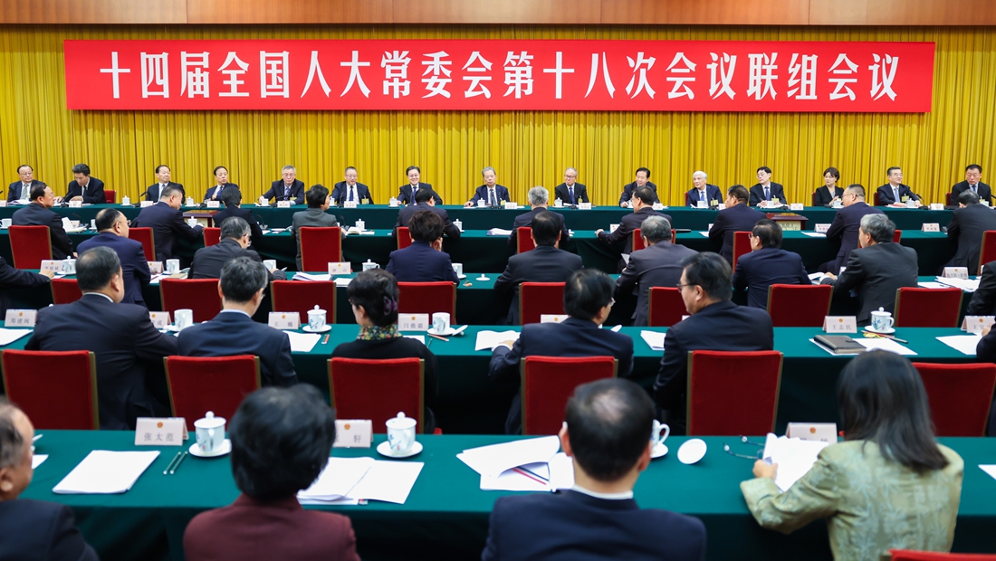十四届全国人大常委会第十八次会议举行联组会议 赵乐际出席