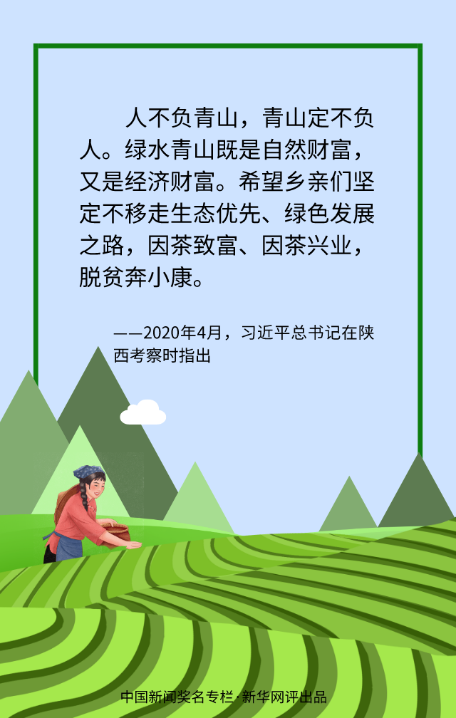 推進綠色發(fā)展,讓綠水青山造福人民群眾,不是權(quán)宜之計,而是長久之策,必須咬定青山不放松,風雨無阻向前行。面對新冠肺炎疫情沖擊和世界經(jīng)濟衰退影響,堅定不移打贏脫貧攻堅收官戰(zhàn),要增強生態(tài)文明建設(shè)的戰(zhàn)略定力,向綠色轉(zhuǎn)型要出路、向生態(tài)產(chǎn)業(yè)要動力,通過發(fā)展綠色產(chǎn)業(yè)吸引大量就業(yè),通過發(fā)展休閑旅游釋放無限商機。端好綠水青山“金飯碗”,念活綠色經(jīng)濟“致富經(jīng)”,幸福生活和可持續(xù)發(fā)展將更有支撐,美麗中國將鋪展開新的畫卷。(文字:馬若虎 海報:滕華)