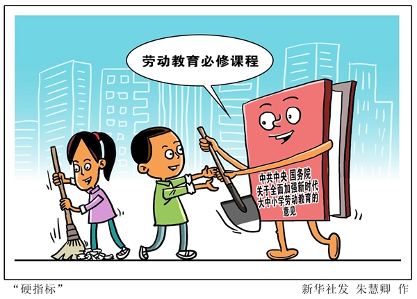 新華社北京3月26日電(記者施雨岑)把勞動(dòng)教育納入人才培養(yǎng)全過程、在大中小學(xué)設(shè)立勞動(dòng)教育必修課程、每年有針對(duì)性地學(xué)會(huì)1至2項(xiàng)生活技能……《中共中央 國務(wù)院關(guān)于全面加強(qiáng)新時(shí)代大中小學(xué)勞動(dòng)教育的意見》近日印發(fā),近年來被淡化、弱化的勞動(dòng)教育有了“硬指標(biāo)”。