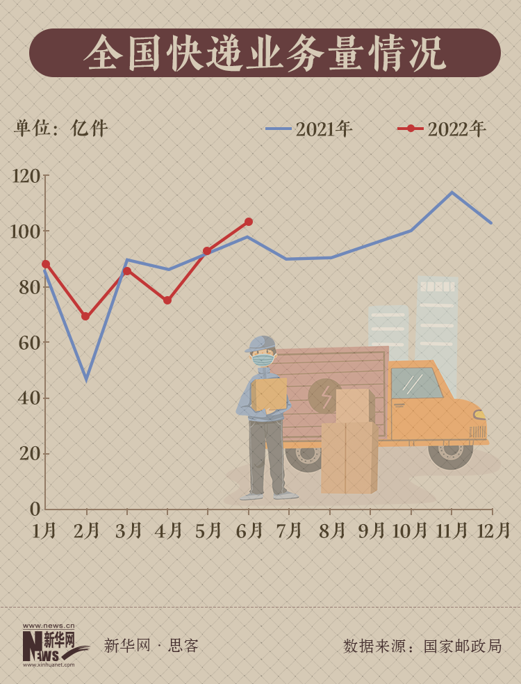 国家邮政局数据显示,今年上半年全国快递服务企业业务量累计完成512.2亿件。根据国家邮政局此前报告,2021年,全国快递业务量完成1083亿件,首次突破千亿件。而目前在疫情影响下,全国半年快递业务量仍然超过了500亿件。