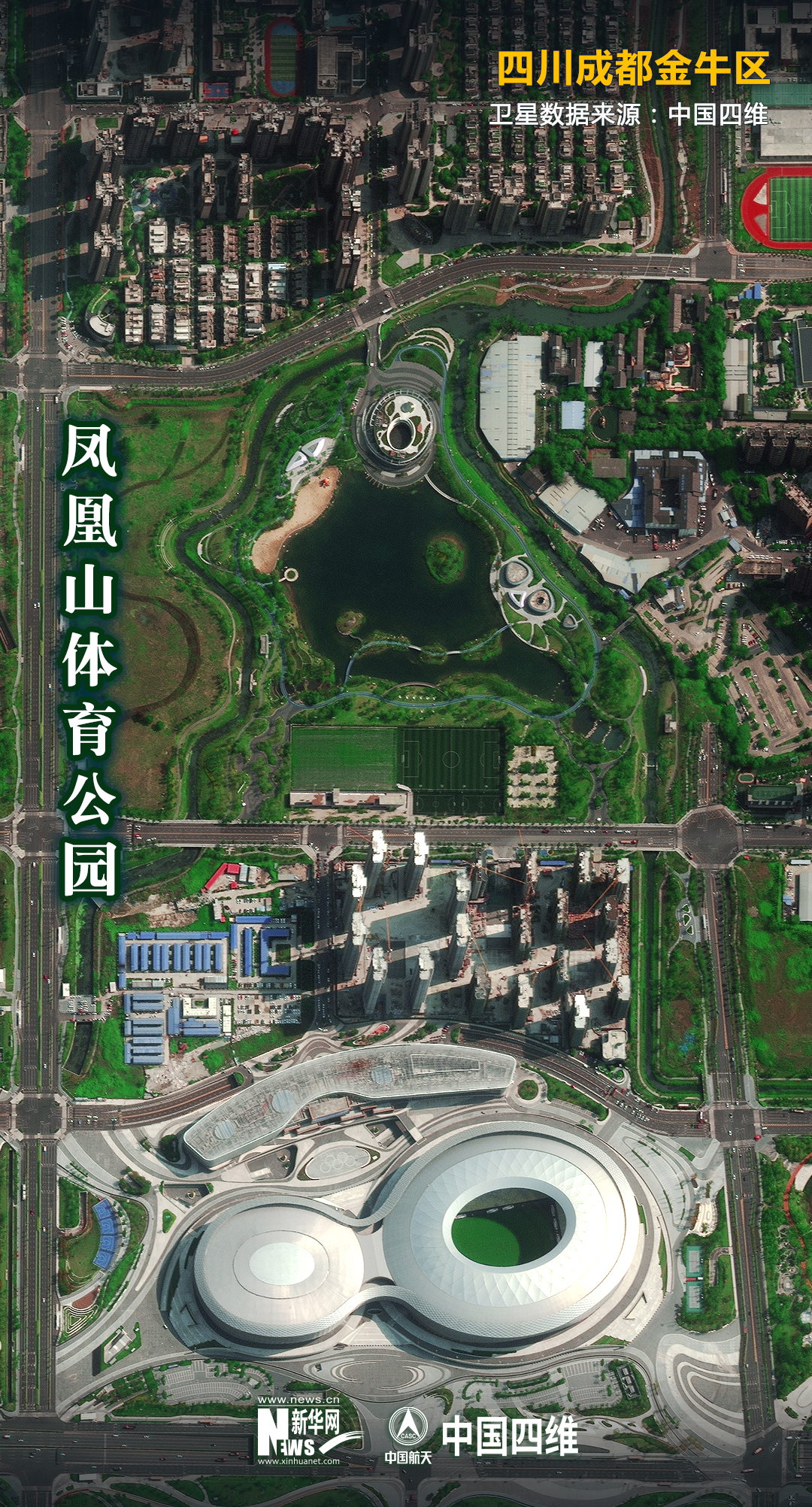 这是2021年8月23日拍摄的凤凰山体育公园专业足球场和综合体育馆(右)。新华社发(成都大运会执委会供图)