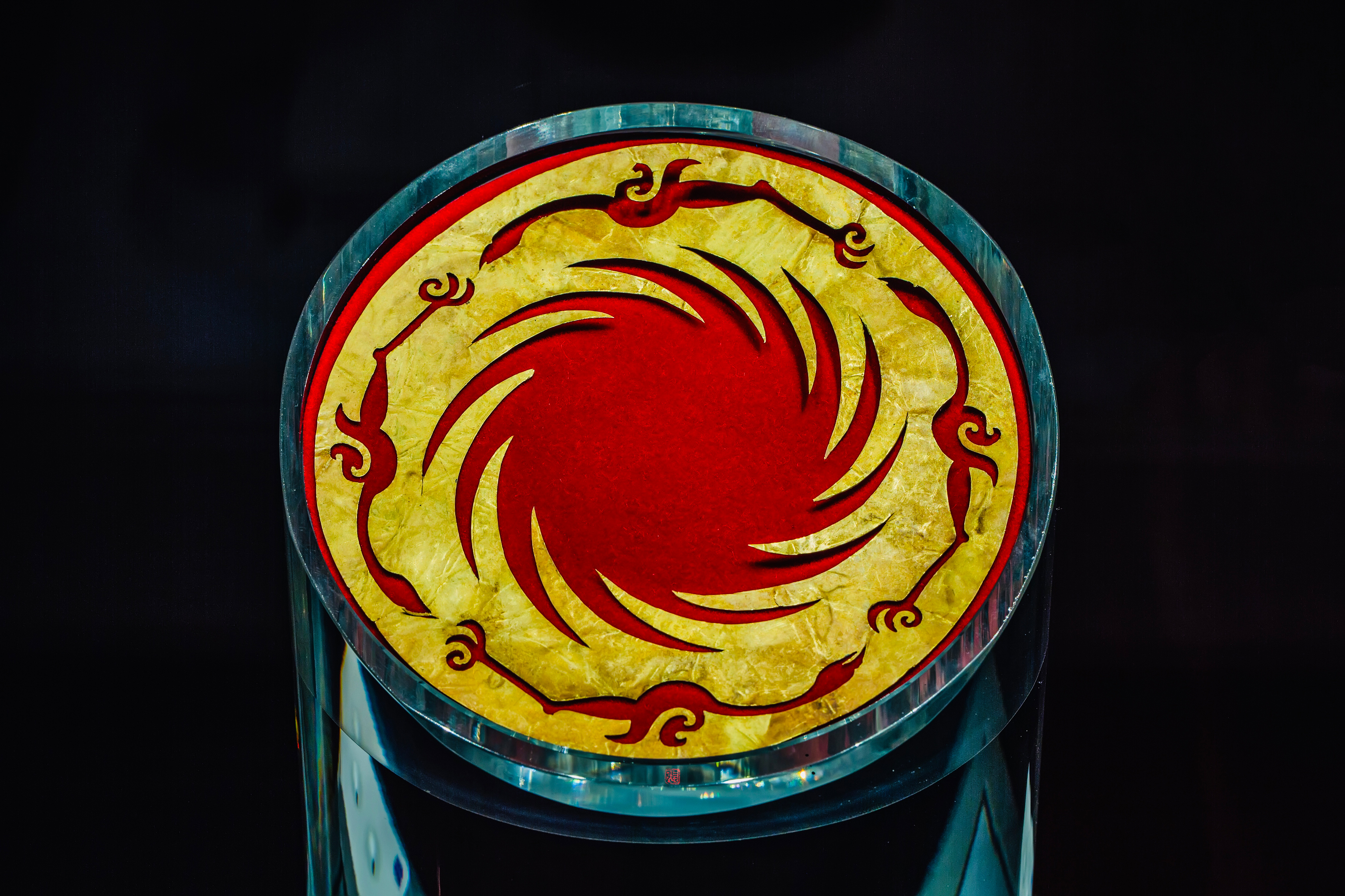 这是成都金沙遗址出土的商周古蜀太阳神鸟金饰(2019年11月4日摄)。新华社发(张艳 摄)