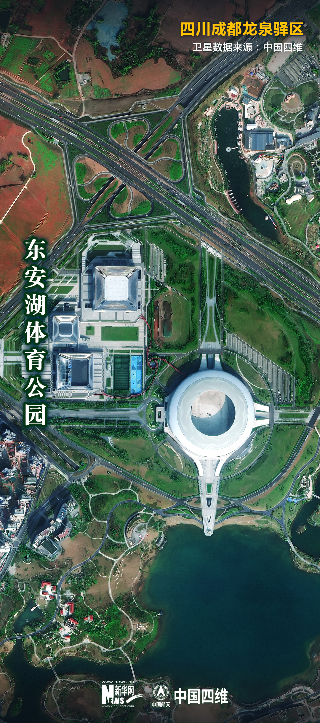 图为俯瞰东安湖体育公园一角(6月27日摄)。新华社记者 江宏景 摄