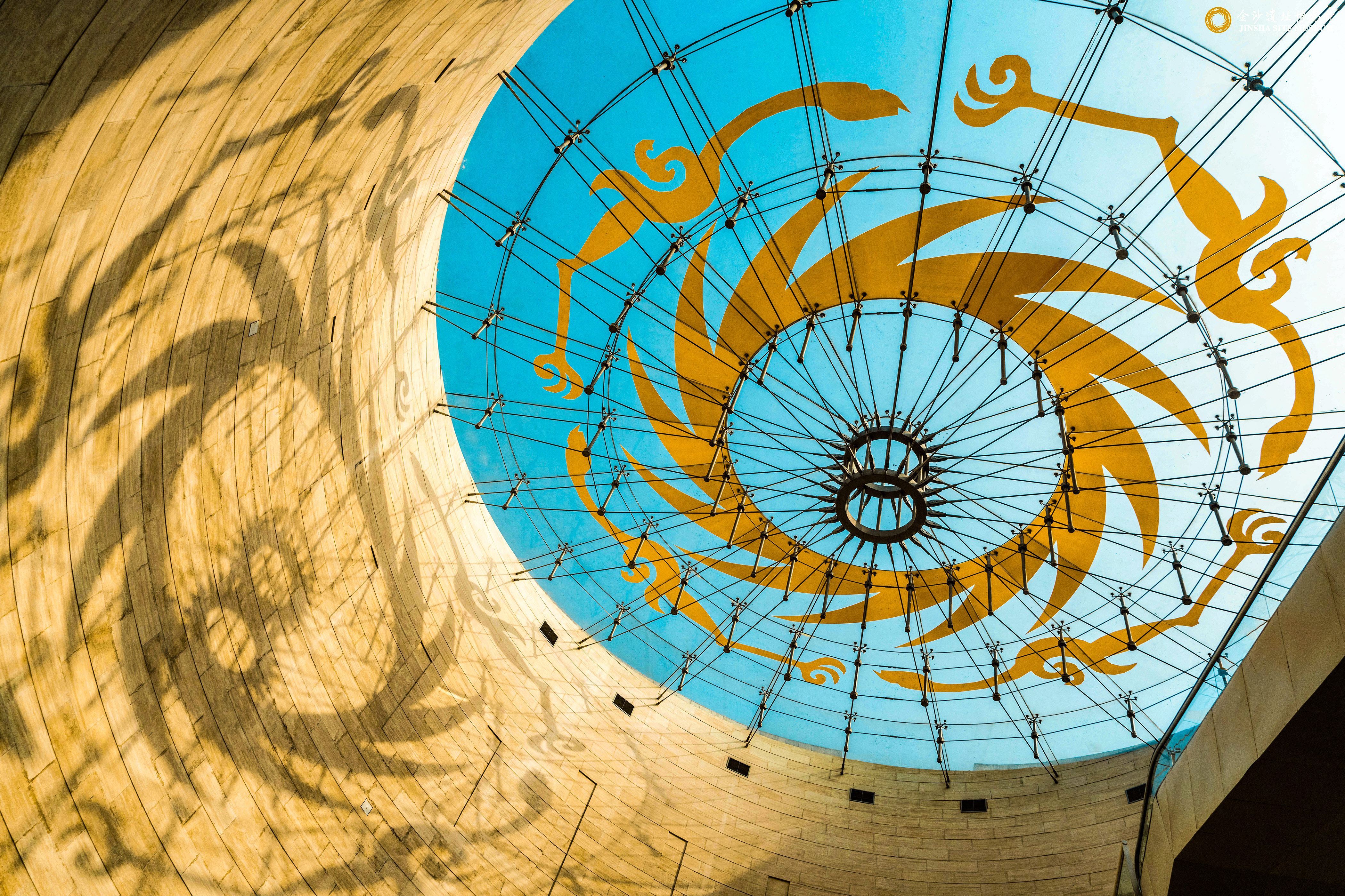 阳光透过成都金沙遗址博物馆陈列馆穹顶(3月10日摄)。新华社发(张艳 摄)