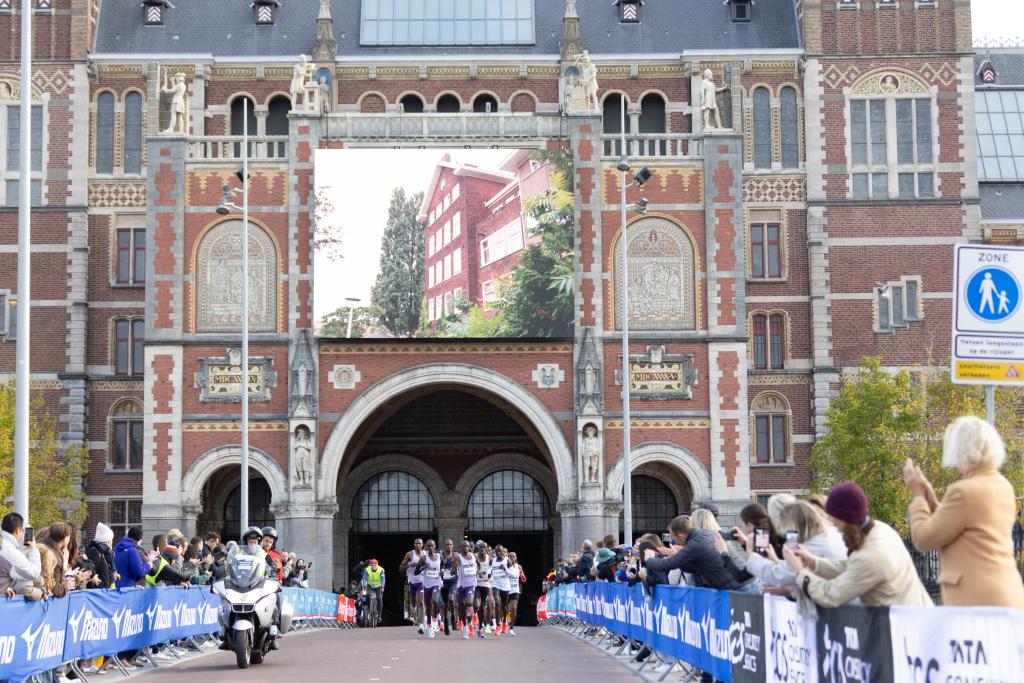 10月19日,参赛选手在荷兰阿姆斯特丹举行的第50届阿姆斯特丹马拉松赛中经过国立博物馆。新华社发(西尔维娅·莱德雷尔摄)