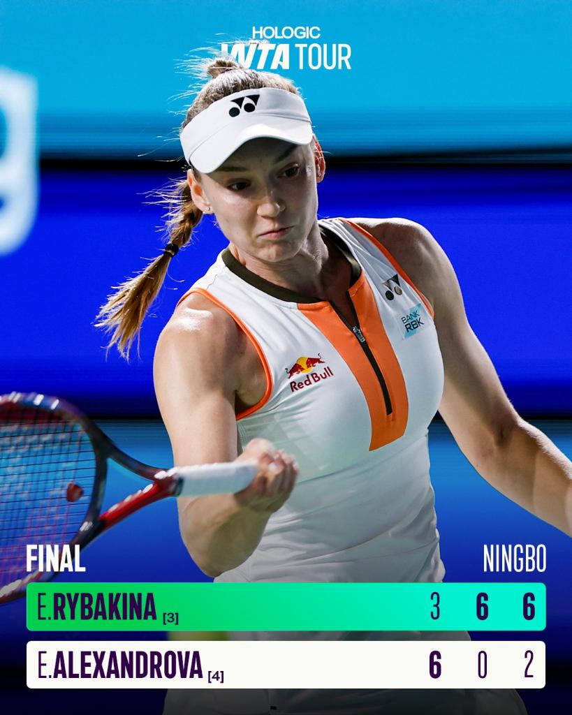 新华社宁波10月19日电(记者夏亮)19日,WTA(女子网球协会)500宁波公开赛进行了决赛角逐,赛会三号种子莱巴金娜在先失一盘的情况下,逆转战胜四号种子亚历山德洛娃,夺得冠军。