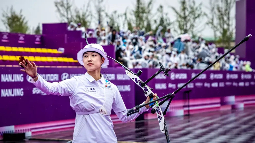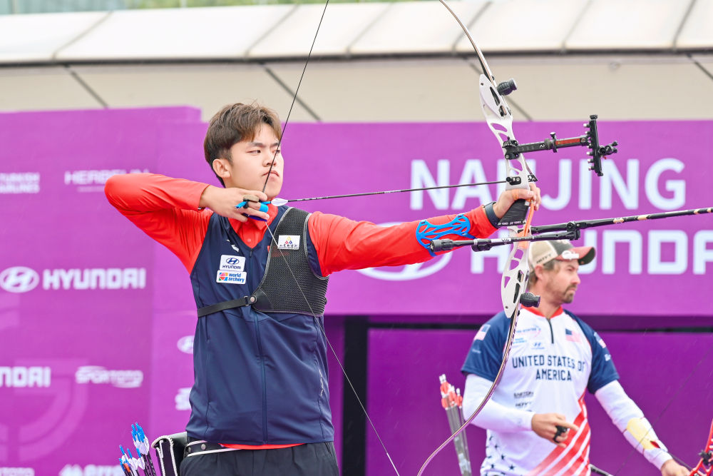 新华社南京10月19日电(记者王恒志)2025现代汽车·射箭世界杯总决赛19日在江苏南京落幕,中国队两位女选手李佳蔓、朱静怡和男子选手考文超均止步反曲弓首轮比赛,美国老将埃利森和韩国名将安山分别夺得男、女反曲弓金牌。