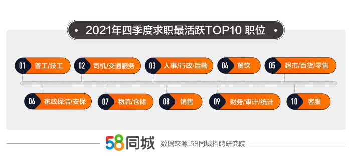 近日,为全面展现新业态、新变化对于就业市场的影响,招聘平台58同城发布了2021年四季度人才流动趋势报告,从职位、薪资、城市等维度剖析了当前就业市场人才流动趋势,以帮助招聘方把握人才流向,并助力求职者准确掌握就业需求。