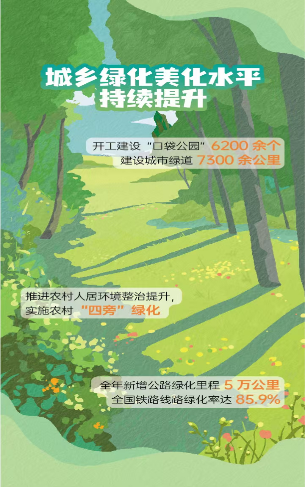 新华网北京3月12日电(郭香玉)3月12日,是我国第47个植树节。全国绿化委员会办公室发布《2024年中国国土绿化状况公报》显示,2024年全国完成营造林444.6万公顷、种草改良322.4万公顷、治理沙化石漠化土地278.3万公顷,我国森林覆盖率超25%,森林蓄积量超200亿立方米,国土绿化工作取得新成效。