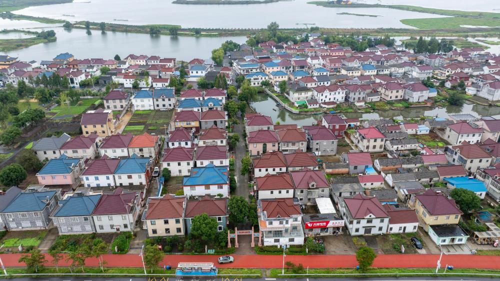 这是2025年10月17日拍摄的江苏省泰州市兴化市千垛镇东罗村(无人机照片)。新华社发(周社根摄)