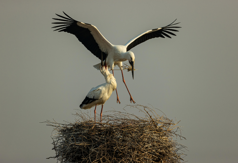 衔枝筑巢的东方白鹳。国家林草局供图