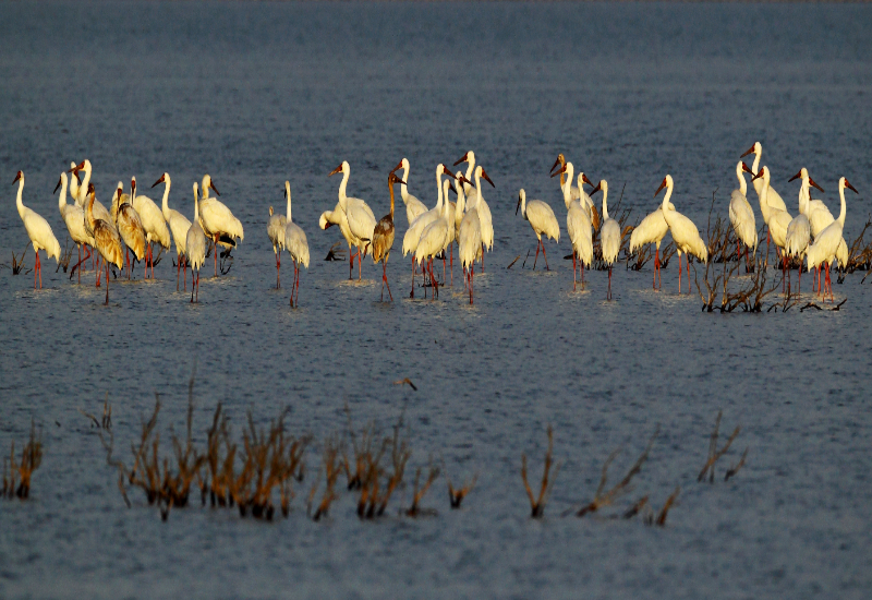 清晨的白鹤(山东黄河三角洲国家级自然保护区)。国家林草局供图
