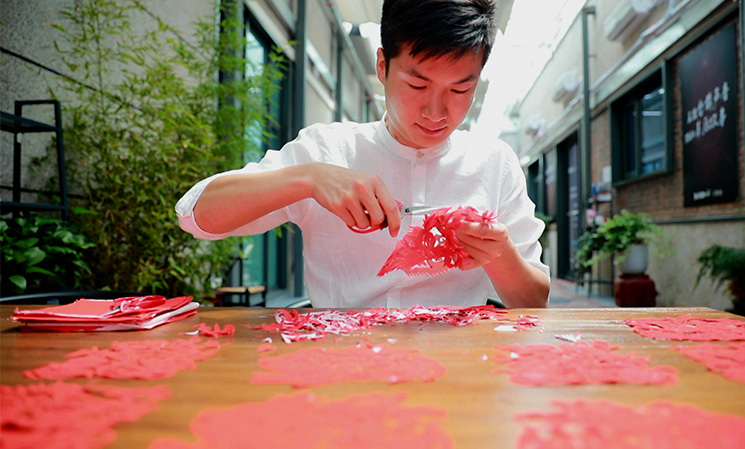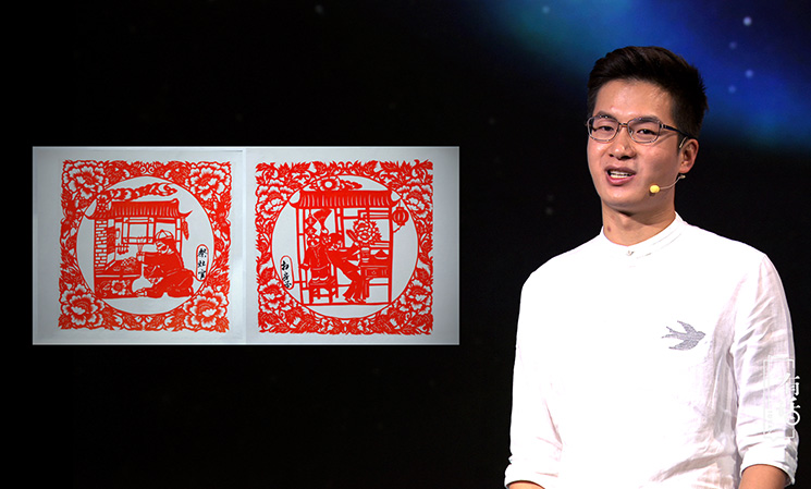 作為一個90后的剪紙傳承人,就要剪一些有新時代特點的剪紙作品。我擅長的是即興創(chuàng)作、脫稿剪紙,速度就是快。我們會了那些傳統(tǒng)的圖案之外,還要能夠看到任何的物體,或者別人給我一個命題就能即時創(chuàng)作。搞剪紙創(chuàng)作一定要豐富自己的知識面,這樣腦海中才會有更多的畫面跟場景。我感覺剪紙是讓我用紙和剪刀在對話,把我的情感通過紙釋放出來。其實是一種靜修,或者自我的享受。我以后要開展的工作,或許是要承擔著怎樣讓剪紙在00后、10后、20后這些年輕一代的未來人,怎么能認識我們這種傳統(tǒng)藝術,這是我一生要去做的事情。