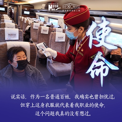 孫碩,北京客運段京廣高鐵車隊的列車長之一。進入高鐵工作8年時間,其中7次大年三十在值乘任務(wù)中度過,沒有陪伴家人。2020年春運,他值乘北京西至福田站的G71/72次復興號動車組列車,途徑石家莊,鄭州東,武漢,長沙南,廣州南等省會車站。他的母親作為醫(yī)護工作者,曾參與過非典時期的救援任務(wù),他雖不是醫(yī)護人員,但在這個特殊時期服務(wù)于社會,依然感到榮幸。
