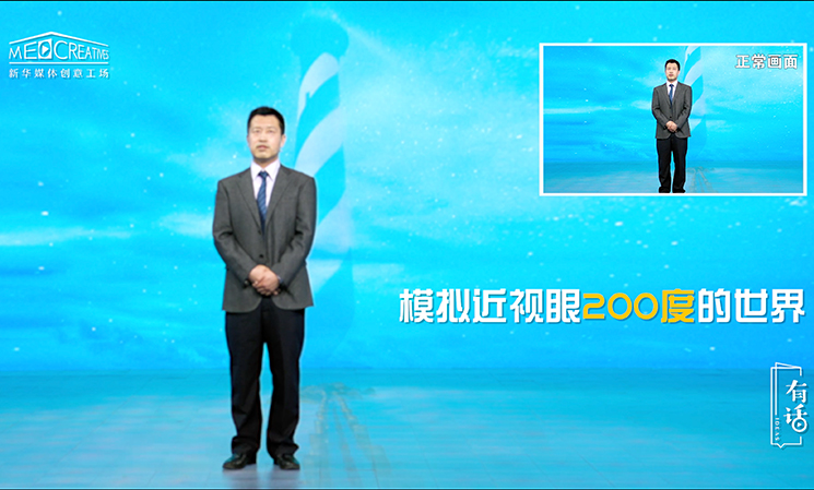 說到這,很多人就會說,近視眼戴副眼鏡就行了,對生活的影響真的這么大嗎?真的會有那么可怕的后果嗎?在這里,我給大家模擬一下,不同視力程度的人看到的世界。我們正常的眼睛看到的世界是清晰明亮的,正如您現(xiàn)在看到鏡頭里的我是清晰的,我臉上的表情你能夠看到。到了200度近視的患者眼里,世界就已經(jīng)開始變得模糊了。這個時候我在說話,我的眼睛在看著你,你還是能看得到的。在這個階段如果我們能夠采取一個合理的矯正方式,是有機(jī)會維持并且把我們的視力恢復(fù)到一個正常的范圍。
