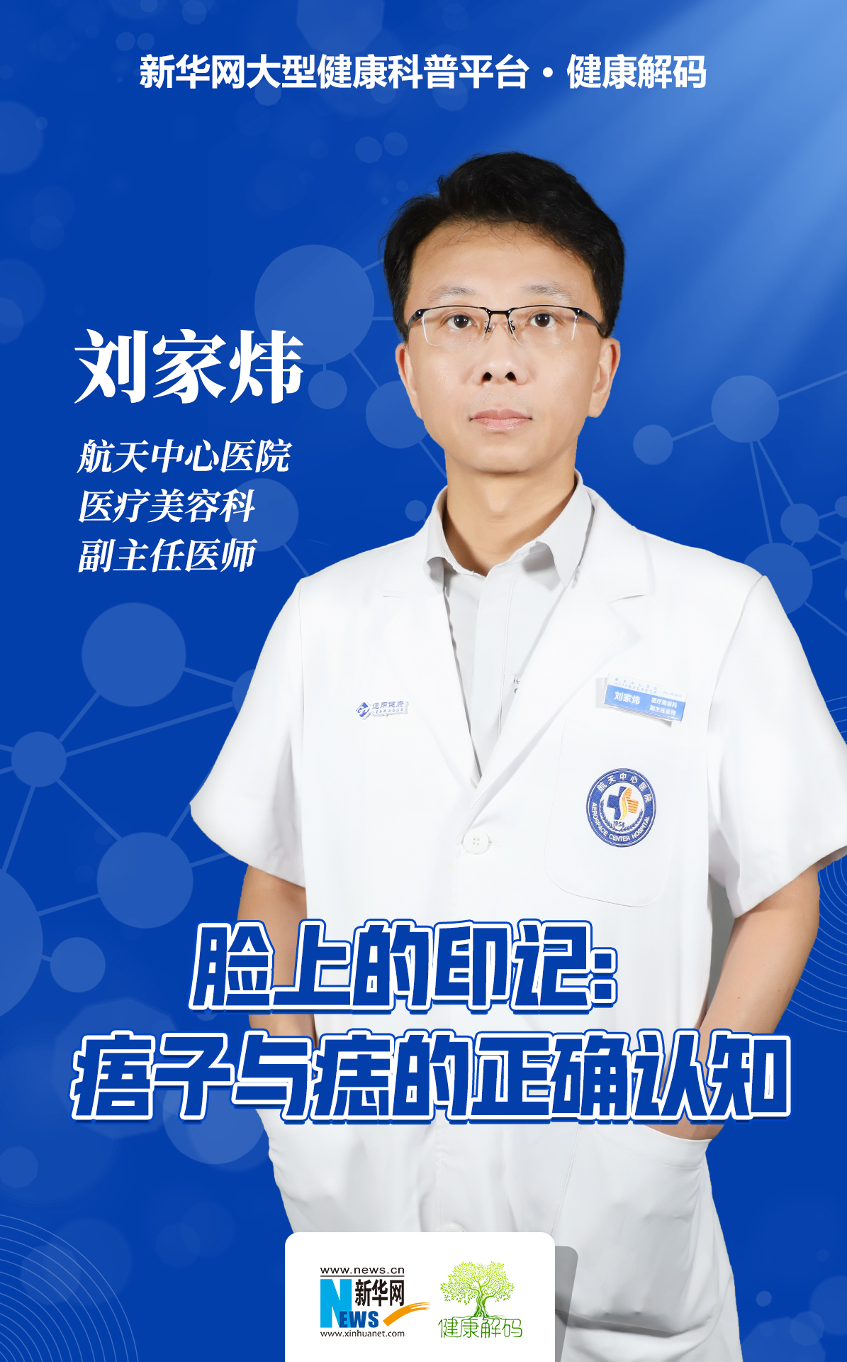 本集节目我们邀请了航天中心医院医疗美容科副主任医师刘家炜分享《脸上的印记:痦子与痣的正确认知》。