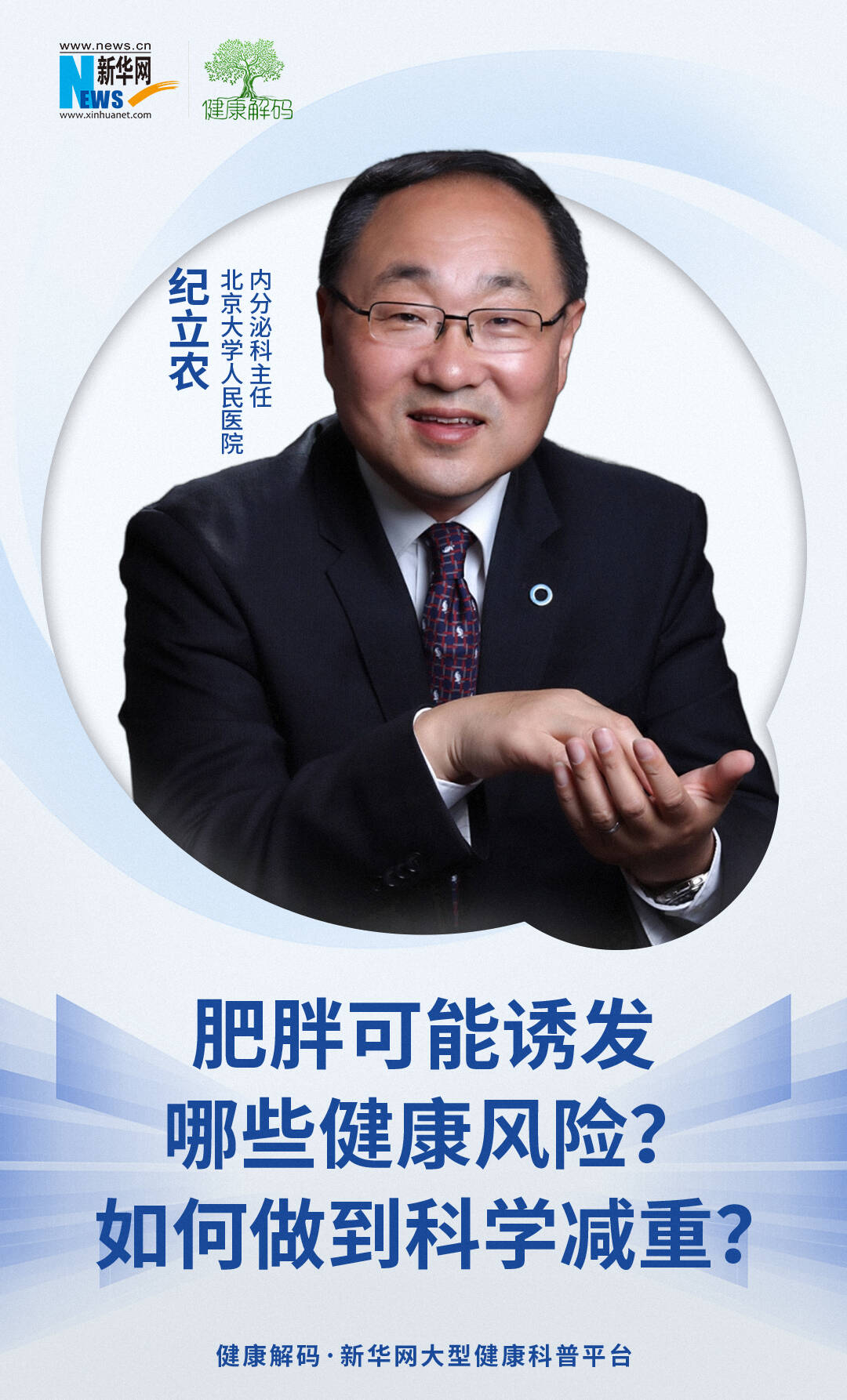 纪立农:随着体重的增高,特别是达到超重和肥胖的程度,它是很多疾病的加速器,比如说,超重和肥胖的个体,糖尿病会出现的更早,也相对更容易出现血脂的异常和高血压。另外,如果长期处在超重和肥胖状态,今后出现心脑血管疾病以及肿瘤的机会都会增加。