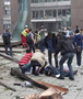 挪威警察從爆炸現(xiàn)場(chǎng)抬出受傷人員