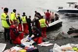 挪威警察從爆炸現(xiàn)場抬出受傷人員