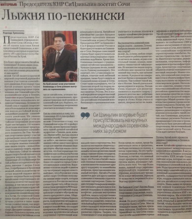 2014年1月28日,中國(guó)駐俄羅斯大使李輝就習(xí)近平主席應(yīng)俄羅斯總統(tǒng)普京邀請(qǐng)出席索契冬奧會(huì)接受俄政府報(bào)紙《俄羅斯報(bào)》專訪。