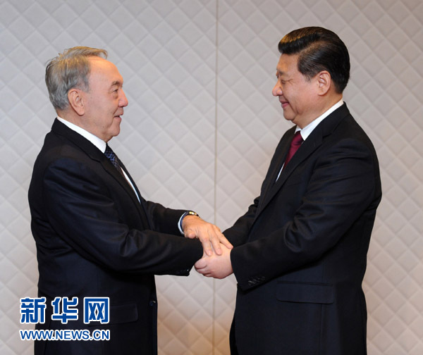 ????習(xí)近平表示,當(dāng)前形勢下,中哈合作的戰(zhàn)略意義更加凸顯。今年5月你將訪華并出席亞洲相互協(xié)作與信任措施會議峰會。我期待著同你就雙邊關(guān)系及重大國際和地區(qū)問題繼續(xù)深入交換意見,著力推進(jìn)經(jīng)貿(mào)、能源、農(nóng)業(yè)等領(lǐng)域合作。中方愿同哈方共同努力,確保訪問取得更多實(shí)質(zhì)成果。習(xí)近平表示,中哈作為亞信候任主席國和首倡國,要密切配合,推動樹立亞洲新安全觀,構(gòu)建亞洲安全和合作新架構(gòu),為亞洲和平與安全作出更大貢獻(xiàn)。