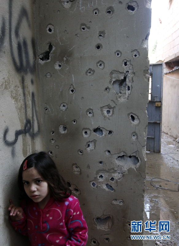 3月23日,黎巴嫩首都貝魯特槍戰(zhàn)現(xiàn)場(chǎng),一黎巴嫩女童在躲避槍戰(zhàn)。