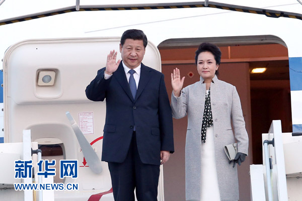 ????當(dāng)?shù)貢r(shí)間25日下午6時(shí)40分許,習(xí)近平乘坐的專機(jī)抵達(dá)里昂機(jī)場。法國外長法比尤斯受法國總統(tǒng)奧朗德指派專程前來迎接習(xí)近平和夫人彭麗媛。羅訥省省長卡朗科、里昂市長科隆也到機(jī)場歡迎。