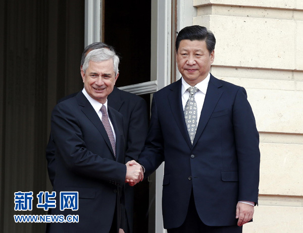????3月27日,國(guó)家主席習(xí)近平在巴黎會(huì)見(jiàn)法國(guó)國(guó)民議會(huì)議長(zhǎng)巴爾托洛內(nèi)。 新華社記者 鞠鵬 攝