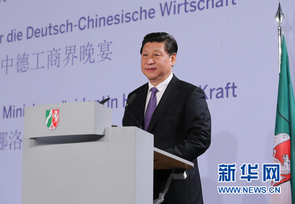 ??? 3月29日,國家主席習近平在杜塞爾多夫出席中德工商界舉行的招待會并發(fā)表題為《把握中國機遇,實現共同發(fā)展》的重要講話。 新華社記者張鐸攝