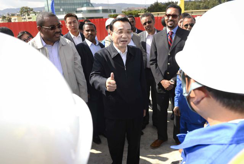 ????新華網(wǎng)北京5月6日電 據(jù)中國(guó)政府網(wǎng)微博報(bào)道,李克強(qiáng)總理當(dāng)?shù)貢r(shí)間5日下午在埃塞俄比亞總理海爾馬里亞姆陪同下,來到建設(shè)中的亞的斯亞貝巴輕軌項(xiàng)目工地考察,慰問建設(shè)工人,并共同出席了亞的斯亞貝巴至阿達(dá)瑪高速公路的一期竣工、二期開工典禮。