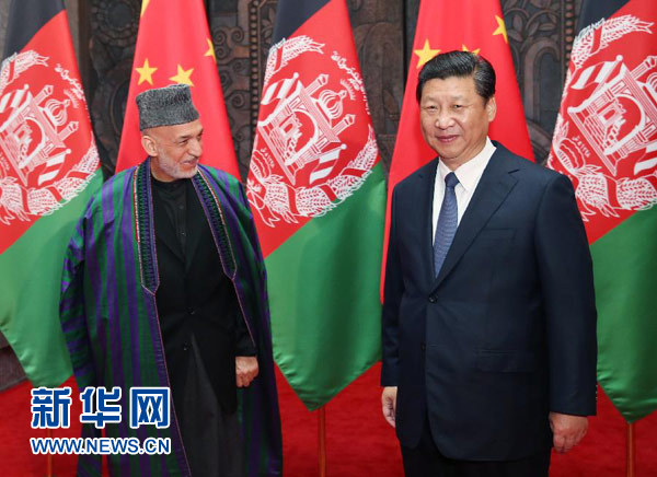 ????習(xí)近平表示,中方希望看到一個團(tuán)結(jié)、穩(wěn)定、發(fā)展、友善的阿富汗,支持阿方為維護(hù)國家獨立、主權(quán)、領(lǐng)土完整所作努力,支持阿富汗人主導(dǎo)、阿富汗人所有的和解進(jìn)程,中方愿繼續(xù)發(fā)揮建設(shè)性作用。中方尊重阿富汗人民的選擇,希望阿富汗總統(tǒng)大選成為阿富汗實現(xiàn)平穩(wěn)過渡、走向團(tuán)結(jié)穩(wěn)定的新起點。阿富汗問題伊斯坦布爾進(jìn)程第四次外長會將于今年8月在中國天津舉行,中方愿同阿方及國際社會密切合作,辦好這次會議。中方也愿意推動上海合作組織在阿富汗問題上發(fā)揮更大作用。