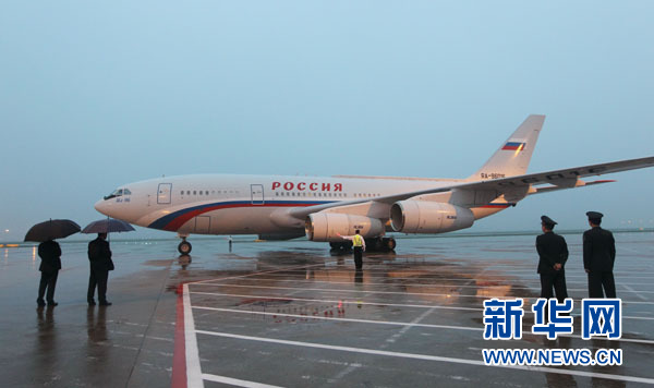 ??? 5月20日,俄羅斯聯(lián)邦總統(tǒng)普京抵達(dá)上海,開始對中國進(jìn)行為期兩天的國事訪問并出席在上海舉行的亞洲相互協(xié)作與信任措施會議第四次峰會。這是普京乘坐的專機(jī)抵達(dá)上海虹橋國際機(jī)場。 新華社記者 裴鑫 攝