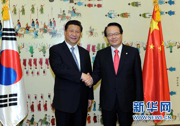 ????新華網(wǎng)首爾7月4日電(記者李建敏李斌)國家主席習(xí)近平4日在首爾會見韓國國會議長鄭義和以及韓國各政黨領(lǐng)袖和友好議員代表。