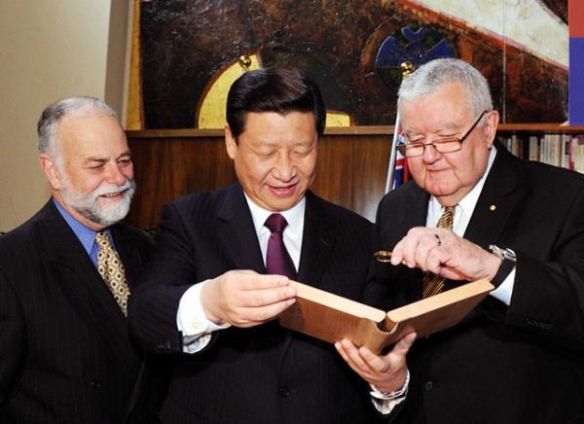 ????2010年6月22日,習(xí)近平在訪澳期間出席向澳大利亞國(guó)立大學(xué)中華全球研究中心贈(zèng)書(shū)儀式。新華社記者 饒愛(ài)民 攝