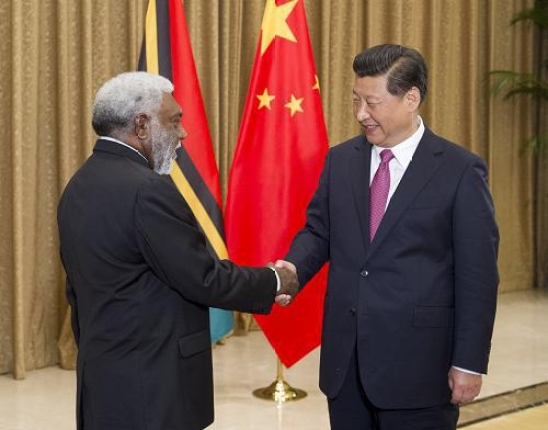 ????(圖為2014年 8月17日,國家主席習(xí)近平在南京會見瓦努阿圖總理納圖曼。新華社記者王曄攝)