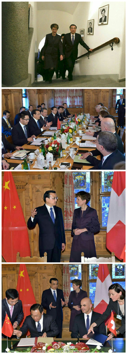??? 新華網(wǎng)北京1月22日電 據(jù)新華社“新國際”微博報道,當(dāng)?shù)貢r間21日下午,國務(wù)院總理李克強同瑞士聯(lián)邦主席索瑪魯加舉行會談。李克強說,中方歡迎瑞方參與人民幣國際化進程,支持蘇黎世人民幣離岸市場建設(shè),愿給予瑞士500億元人民幣的合格境外投資者配額,希望瑞方為中資銀行在瑞開設(shè)分行提供便利。