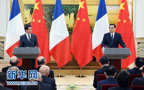 ????1月29日,中國國務(wù)院總理李克強在北京人民大會堂與法國總理瓦爾斯舉行會談后共同會見記者。 新華社記者 姚大偉 攝