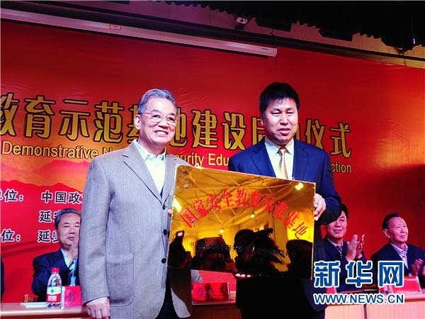 ????新華網(wǎng)延安5月12日電(記者 郝斐然)中國政策科學(xué)研究會國家安全政策委員會12日在陜西省延安市為延安中學(xué)“國家安全教育示范基地”授牌。第十一屆全國政協(xié)副主席、中國政策科學(xué)研究會國家安全政策委員會名譽(yù)會長李金華為延安中學(xué)頒發(fā)“國家安全教育示范基地”牌匾。
