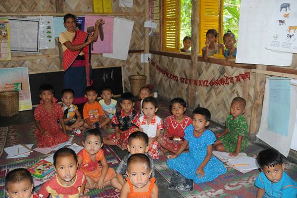 ↑2009年7月17日,孟加拉國東南部科格拉焦里縣,孩子們在聯(lián)合國兒童基金會(huì)支持的社區(qū)發(fā)展計(jì)劃下接受學(xué)前教育。(新華社記者黃亞男攝)