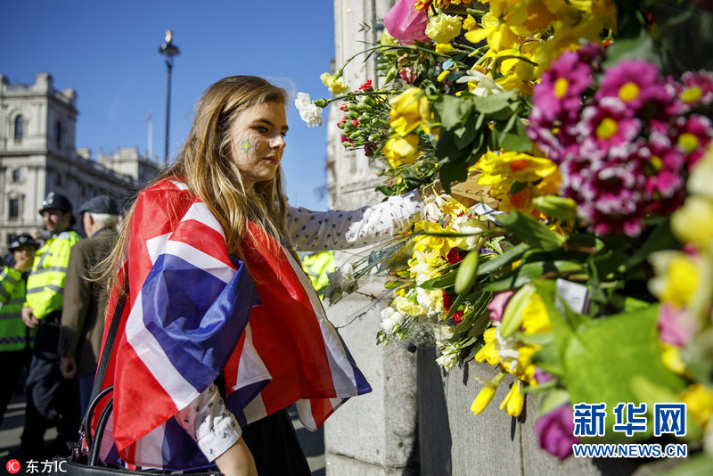 英國民眾在議會外擺放鮮花 哀悼恐襲受害者(組圖)