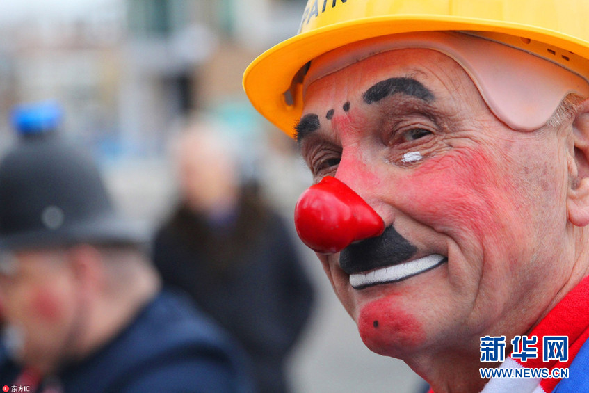當(dāng)?shù)貢r(shí)間2月4日,英國(guó)倫敦,人們扮成小丑的模樣聚集在圣三一教堂,為英國(guó)“小丑之父”約瑟夫-格里馬爾迪(1778-1837)舉辦紀(jì)念會(huì)。(圖片來(lái)源:東方IC)