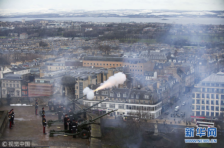 2月6日,英國(guó)愛丁堡,皇家炮兵在愛丁堡城堡鳴響21響皇家禮炮,紀(jì)念英國(guó)女王伊麗莎白二世登基66周年。(圖片來源:視覺中國(guó))