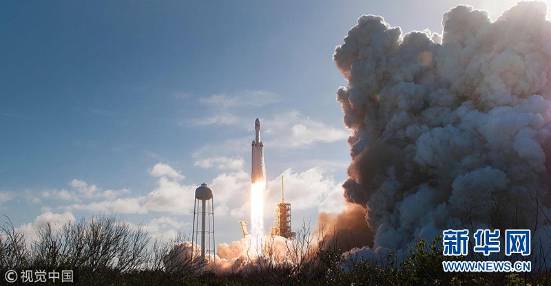 當?shù)貢r間2018年2月6日,美國佛州卡納維拉爾角,美國重型運載火箭“獵鷹重型”6日攜帶一輛特斯拉跑車發(fā)射升空。(圖片來源:視覺中國)