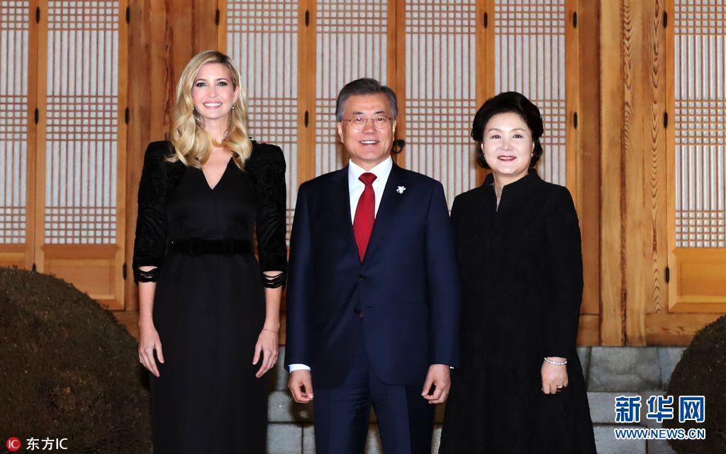 當(dāng)?shù)貢r(shí)間2018年2月23日,韓國(guó)首爾,韓國(guó)總統(tǒng)文在寅夫婦在青瓦臺(tái)設(shè)晚宴,歡迎伊萬(wàn)卡來(lái)訪。美國(guó)總統(tǒng)特朗普之女、總統(tǒng)助理伊萬(wàn)卡率領(lǐng)的美國(guó)代表團(tuán)23日抵韓進(jìn)行訪問(wèn),并將出席平昌冬奧會(huì)閉幕式。(圖片來(lái)源:東方IC)