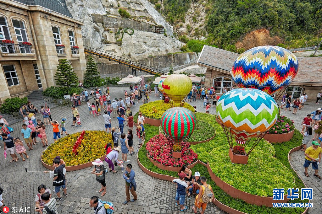 越南巴拿山有世界著名的纜車,20分鐘左右便可抵達(dá)山頂?shù)姆▏?guó)小鎮(zhèn)。(圖片來(lái)源:東方IC)
