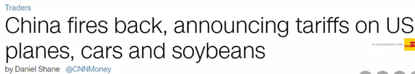 CNN發(fā)表題為《中國還擊,對(duì)美國進(jìn)口的飛機(jī)、汽車和大豆加征關(guān)稅》的文章。