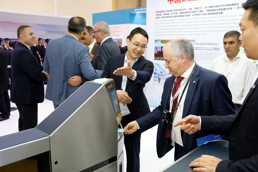 5月8日,在土耳其安卡拉,觀眾在國際高鐵大會上體驗中國鐵路檢票閘機。新華社記者 秦彥洋 攝
