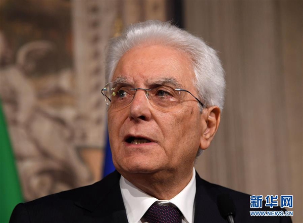 5月27日,在意大利首都羅馬,意總統(tǒng)馬塔雷拉出席新聞發(fā)布會。據(jù)當?shù)孛襟w報道,意大利新任總理孔特27日晚間與總統(tǒng)馬塔雷拉會面并提交擬定的內(nèi)閣成員名單時,馬塔雷拉否決了由意大利聯(lián)盟黨和五星運動力推的持疑歐立場的經(jīng)濟學家保羅·薩沃納出任財政部長??滋叵蚩偨y(tǒng)提出放棄組閣任務請求,請求得到總統(tǒng)確認。新華社發(fā)(阿爾貝托·林格里亞攝)