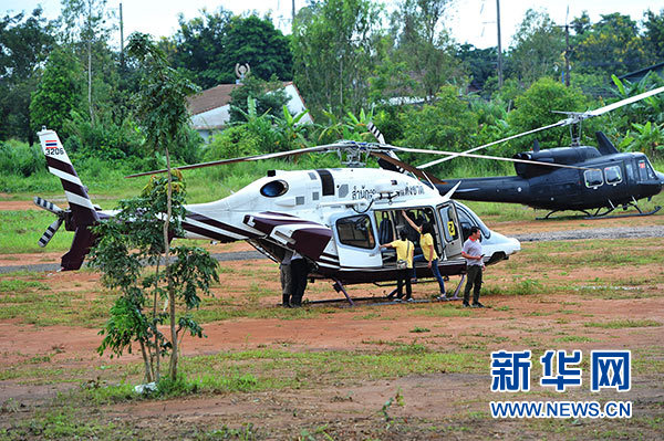 7月9日,在泰國(guó)清萊,直升機(jī)在山洞附近待命。新華社發(fā)(拉亨 攝)