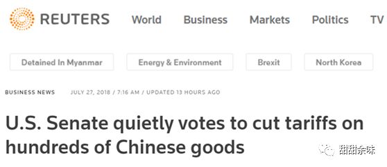 英國路透社日前報道,美國參議院7月26日通過了一個名為Miscellaneous Tariff Bill的法案,中文稱為“綜合關稅法案”或“關稅雜項法案”。報道的標題頗有意味地用了個修飾詞“quietly”(靜悄悄地)——《美參議院悄悄通過立法降低數百種中國商品的關稅》。